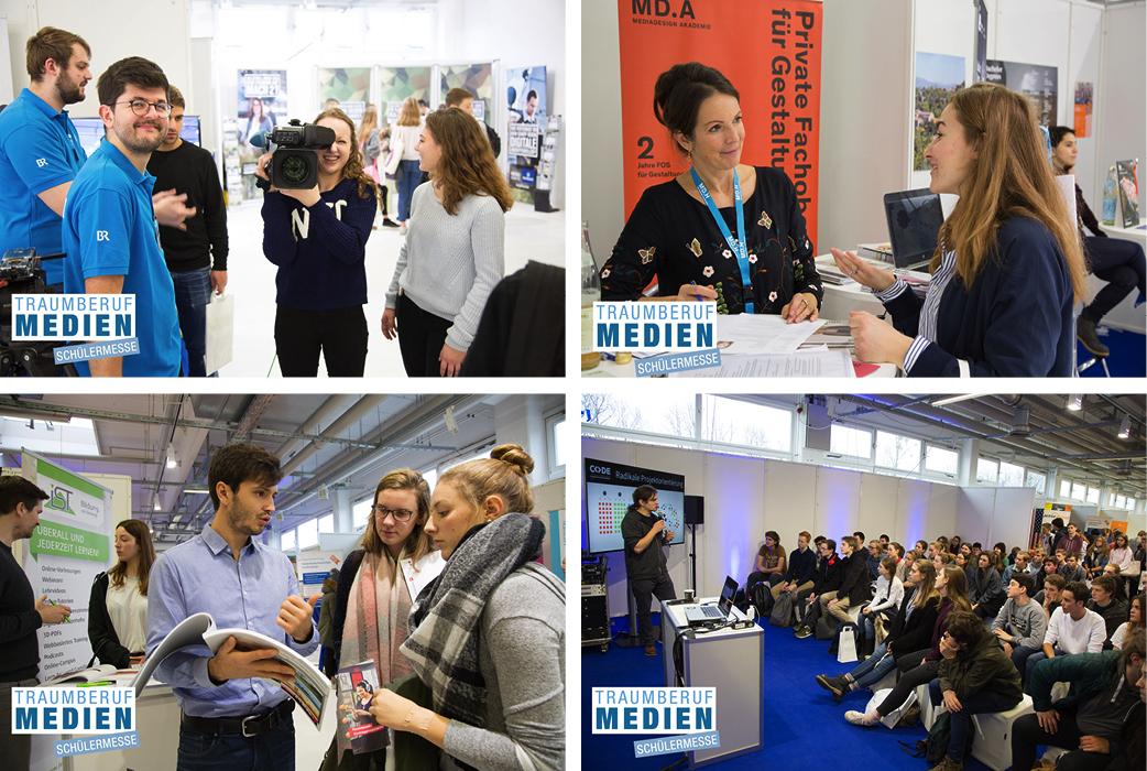 Von Film & Fernsehen, Radio und Journalismus bis Modedesign und internationalem Management - auf der Schülermesse „Traumberuf Medien“ am 8.12.2017 halfen 40 Hochschulen, Behörden und Unternehmen interessierten Schülern, sich ein klareres Bild über ihre berufliche Zukunft zu machen.