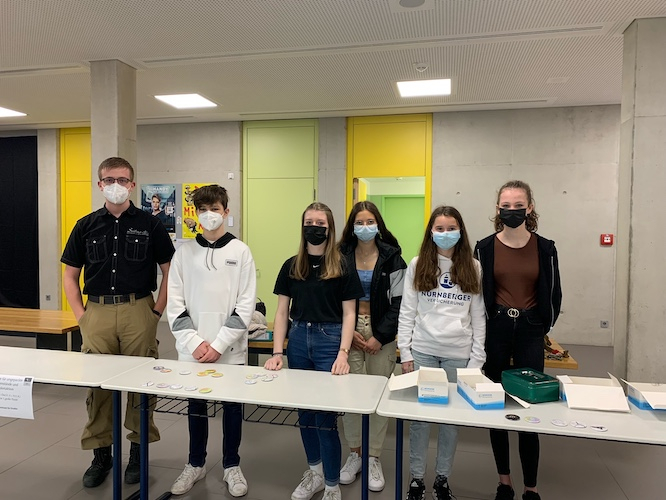 Die Schülerinnen und Schüler der SMV haben verschiedene Aktionen gestartet. Innerhalb der Klassen wurden gemeinsam Pakete für Kinder und Frauen, sowie für ein Kinderheim gepackt. Darüber hinaus haben wir Friedensbuttons produziert und sie an drei Tagen in der großen Pause verkauft. Hier gab es eine Art Sammelstation, an der die Pakete der Klassen, und unverpackte Gegenstände abgegeben und die Buttons gekauft werden konnten. Insgesamt sind so 4020,- Euro und 132 Pakete zusammengekommen, die wir nun an “Roth-hilft” und über die Familie Häckl an ein Kinderheim weiterschicken. Das Geld wird zu gleichen Teilen an diese beiden Aktionen und die UN-Flüchtlingshilfe übergeben (je 1340,- Euro).