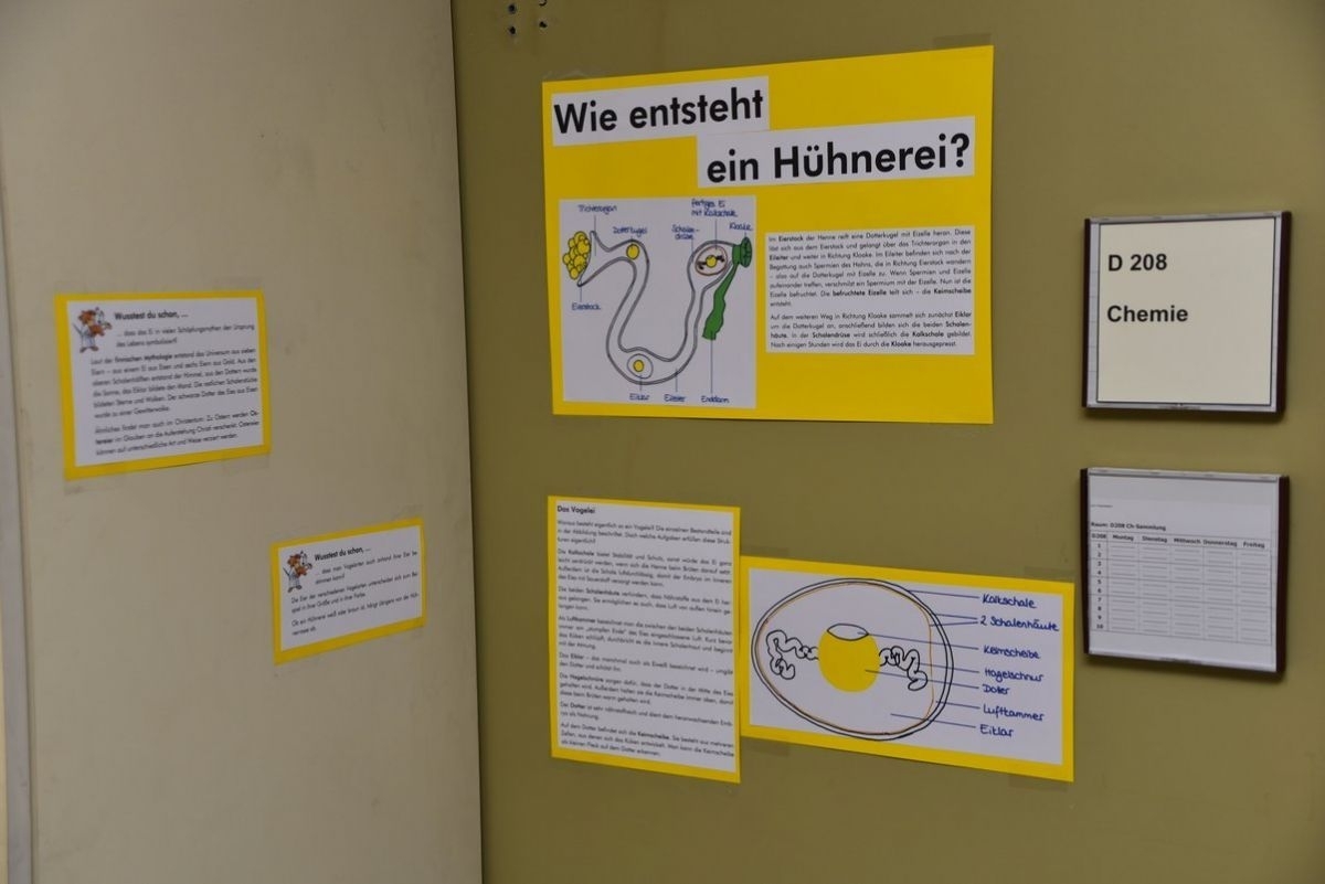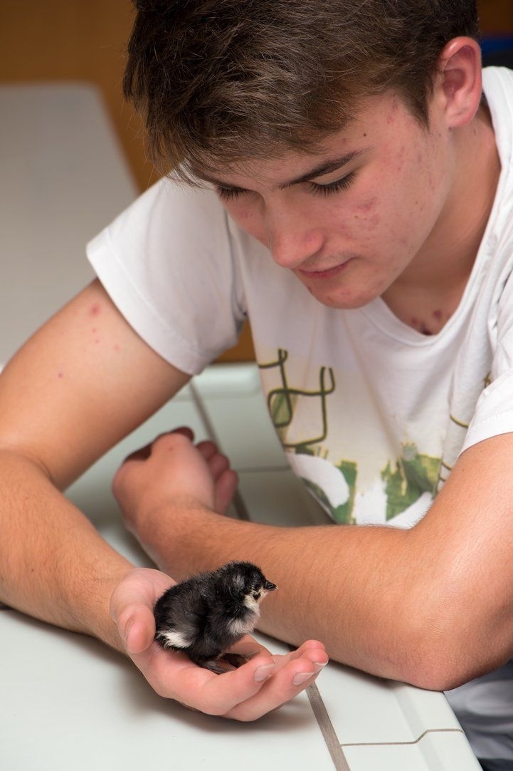 Bereits während die Eier im Brutapparat lagen, kamen während der Pausen Schüler, um sich täglich über die Entwicklung eines Huhns im Ei zu informieren und diesen Vorgang live zu beobachten und zu verfolgen. Doch spätestens nachdem die ersten flauschigen Federtiere geschlüpft waren, gab es für alle – kleinen und großen – Schüler des Gymnasiums kein Halten mehr: Die Küken wurden in jeder Pause und sogar vor und nach dem Unterricht beobachtet! Besonders die Begeisterung aller Schüler hat gezeigt, wie beeindruckend es war, die Entwicklung eines Kükens im Ei live mitzuerleben.