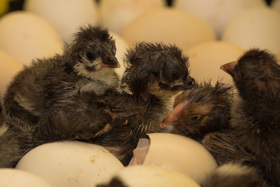 Am 30. Mai 2017 war es endlich soweit – nach 21 Tagen hatte das lange Warten auf das Schlüpfen der Küken ein Ende! Und nachdem an diesem Morgen bereits zehn Hühnerküken geschlüpft waren, folgten ihre zehn weiteren Gefährten innerhalb von 24 Stunden.